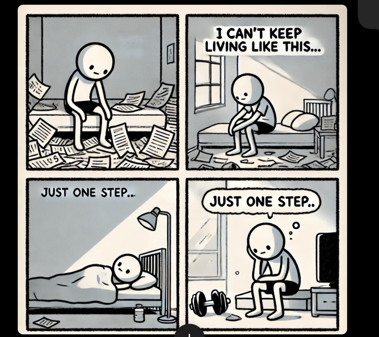 오늘이 특별한 날은 아닐지도 모른다. 운동을 했다고, 글을 썼다고 해서 내 삶이 완전히 바뀌지는 않을 것이다. 하지만 적어도 나는 첫걸음을 뗐다. 무너졌던 곳에서 다시 일어나는 데는 시간이 필요하다. 하지만 나는 해볼 생각이다. 한 걸음씩, 다시 살아보기로.