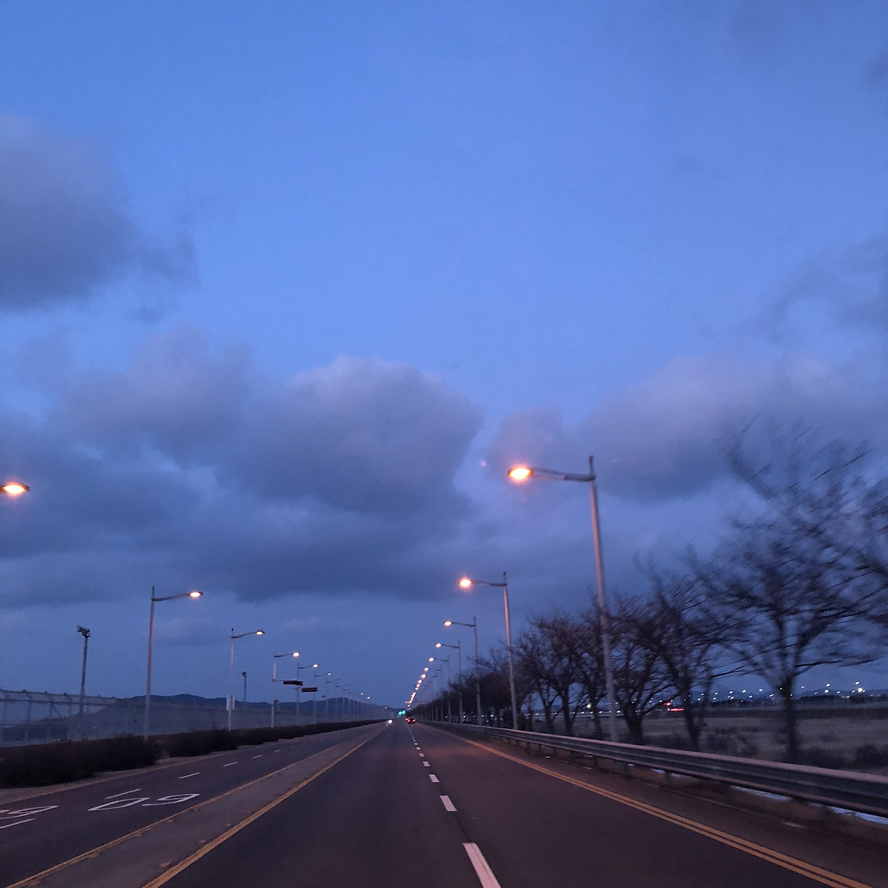 규정된 속도로 길게 쭉 뻗은 도로를 달리면