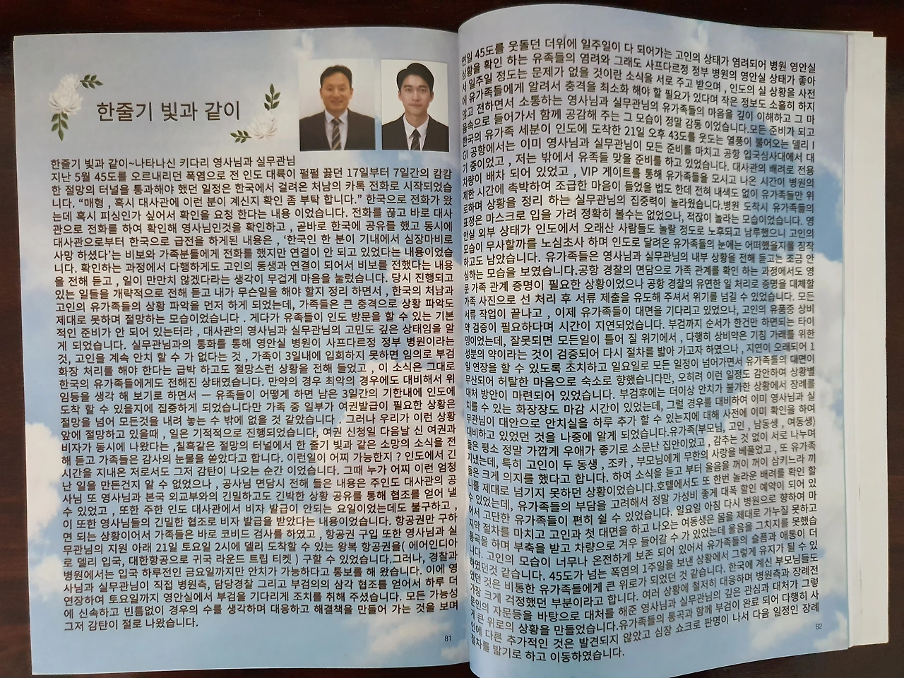 주한인도대사관 비자 담당자는 상황을 이해하고 우리의 요청을 흔쾌히 받아들여 현장에서 바로 유족에게 비자를 발급해주는 기적 같은 일이 일어났다.