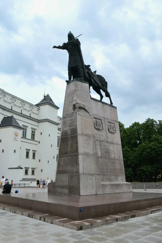 게디미나스의 동상 모습인데, 아쉽게도 동상의 윤곽이 뚜렷하지 못하다. 때문에 게디미나스의 얼굴이며, 동작에서 묻어 나오는 용맹함을 제대로 전해주지 못하는 것이 아쉽기만 하다. 동상 아래쪽의 기단 부분에 여러 사람들의 얼굴이 보이는데, 이는 수도를 빌뉴스로 이전하는 것에 도움을 주었던 공작들의 얼굴이다.