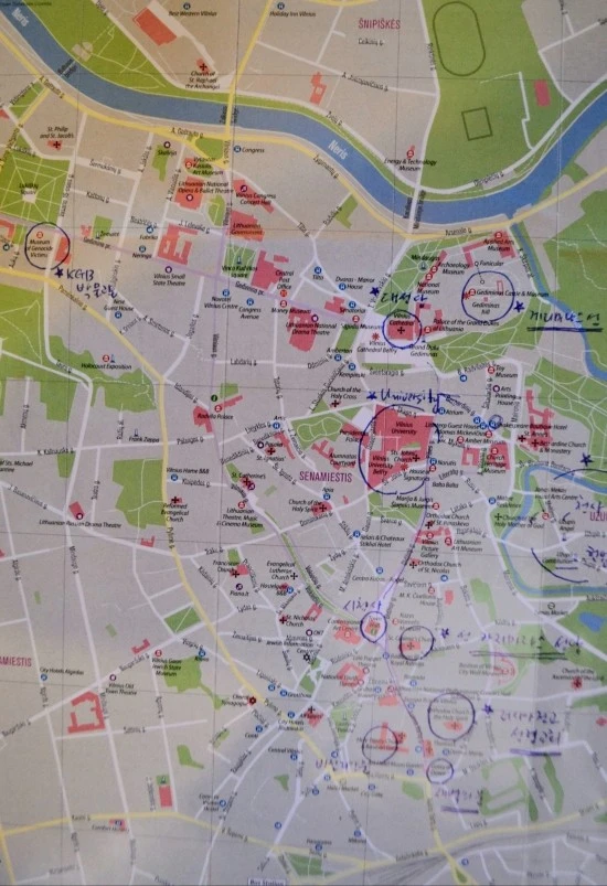 더욱이 성 안나성당과 우즈피스 공화국은 지도 가운데 부분의 오른쪽 끝에 있고, KGB박물관은 지도 왼쪽 끝에 있는데, 이 둘은 줄잡아 2km 이상 떨어져 있다. 때문에 이 곳들까지 모두 둘러보려면 아무리 짧게 잡아도 하루 하고 또 반나절 이상을 바삐 다녀야 한다.