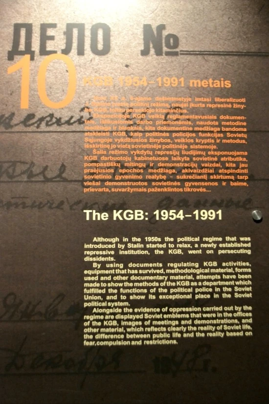 리투아니아란 나라도 역사가 순탄하지만은 않았다. 발틱해를 끼고 있어 해양으로의 진출이 용이하고, 소련(러시아)과 독일이란 강대국 사이에 끼여있는 지정학적 여건이 가장 큰 이유였기 때문인데, 이런 면에서는 우리나라가 겪어야 했던 불행한 역사와 비슷한 면이 있다. 한편 소련(러시아)과 나치 독일의 지배를 받던 시절에는 많은 리투아니아인들이 죽임을 당했는데, 이렇게 죽어간 사람들을 모시는 한편 이를 후세에 전하여 다시는 이러한 일이 되풀이되지 않도록 경계하고자 만들어진 것이 바로 '리투아니아 집단학살 박물관'이다. 다만 박물관이 있는 자리가 예전에 KGB본부(지하실은 당시 감옥)가 있었던 자리인 관계로, '리투아니아 집단학살 박물관'이란 정식 명칭에도 불구하고 사람들은 이를 보통 'KGB박물관'이라고 부르고 있다.