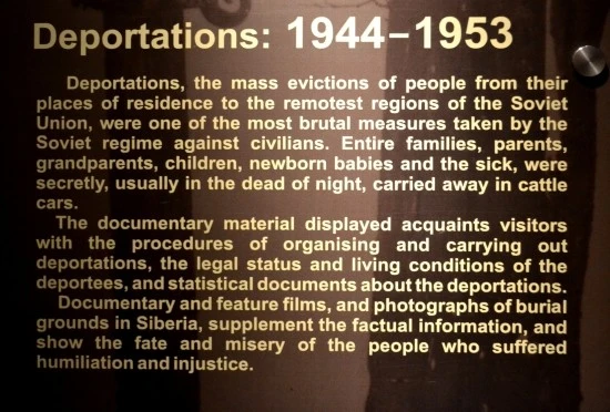 소련이 재차 리투아니아를 지배하기 시작한 1944년부터 1956년에 이르기까지 리투아니아에서는 민간인들의 투옥과 강제노동이 계속된다. 뿐만 아니라 소련은 우리나라에서 했던 짓을 이 곳 리투아니아에서도 자행했는데, 바로 강제이주(Deportation)가 그것이다. 우리나라 사람들이 사할린이나 중앙아시아로 강제이주 당했던 것처럼, 리투아니아인들은 리투아니아에서 가장 멀리 떨어진 시베리아, 캄차카반도로 강제이주를 당했다.