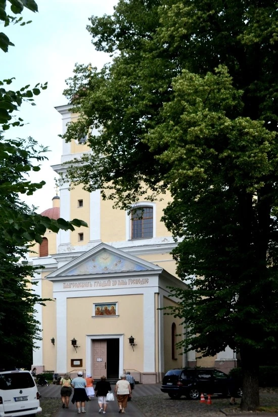구 시청사에서 새벽의 문을 향해 걷다가 새벽의 문에 거의 다다를 지점에 왼쪽에서 만나게 되는 성령교회(Church of the Holy Spirit)는 러시아 정교회 소속 교회이다. 정교회 소속의 교회들의 경우 교회의 본당 건물 앞에 또 하나의 출입구를 갖고 있는 경우가 많은데, 성령교회 또한 그러하다. 핑크색이 감도는 입구를 지나 조금 더 걸어 들어가면 노란색의 본당 건물과 마주치게 된다.