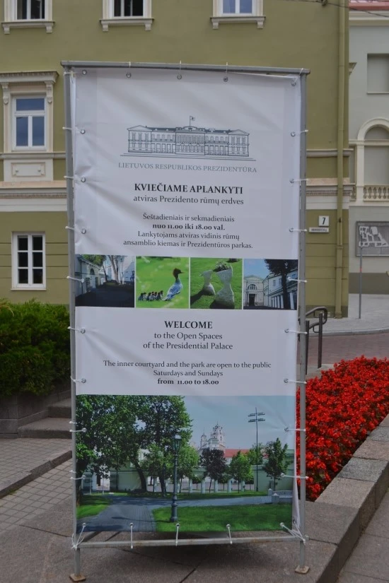 현재 리투아니아의 대통령이 거하는 곳으로 집무실은 오른쪽에 있는데, 우리나라의 대통령이 거하는 곳과는 사뭇 분위기가 다르다. 대통령이 거하는 곳이 여전히 삼엄한 경비로 접근이 여의치 않은 느낌을 주는 것에 반하여, 리투아니아 대통령 궁 앞의 넓은 광장에는 견학을 나온 무리들이 자유롭게 활보하고 있다.