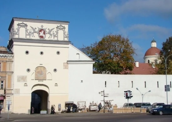 빌뉴스의 구시가지를 둘러싸고 있는 성벽은 16세기에 만들어졌고, 성벽과 함께 성안으로 통하는 5개의 문이 축조되었다. 그런데 그들 5개의 문들 가운데 예전의 모습을 온전히 간직하고 있는 문은 새벽의 문이 유일해서, 이제 새벽의 문은 많은 관광객들이 빌뉴스 관광의 출발점으로 삼는 랜드마크가 되어 버렸다. 구시가지 바깥쪽에서 바라다 본 새벽의 문(사진 왼쪽, 신호등 뒤)과 새벽의 문과 이어져 있는 성벽의 모습인데, 솔직히 "아름답다"라는 찬사가 터져 나올만한 수준은 못된다.