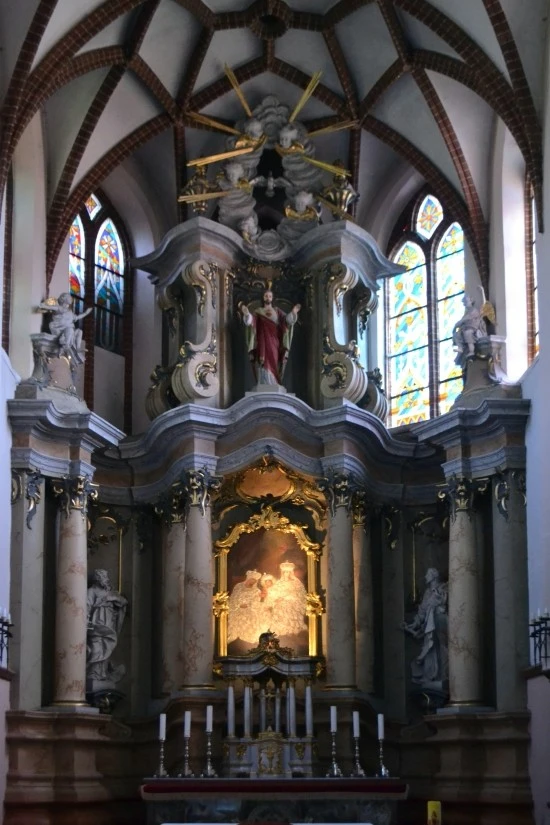 멀리 중앙제단에 금빛으로 빛나는 제단화가 보여서 가까이 다가가 보았다. 사진은 흐릿하고, 사진만큼이나 내 기억도 희미하지만 제단화는 예수님과 그의 부모님이었던 것으로 생각된다.