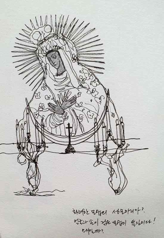 그 중요한 것이 무엇인지를 확인하기 위해서는 이 분들이 예배를 마칠 때까지 꽤 많은 시간을 흘려 보내야 했다. 이윽고 예배가 끝나고 사람들이 물러간 뒤에 예배당 안으로 들어가 보니 17세기에 이름모를 화가가 그렸다는 '기적을 불러 오는 성모 마리아'의 그림이 눈에 들어온다. 은박으로 화려하게 장식된... 특징적인 것은 성모 마리아의 얼굴과 손이 검게 채색되어 있는 것인데, 유럽을 여행하며 검은 얼굴의 성모 마리아를 이미 많이 보아왔기 때문에 어색하지는 않았다.