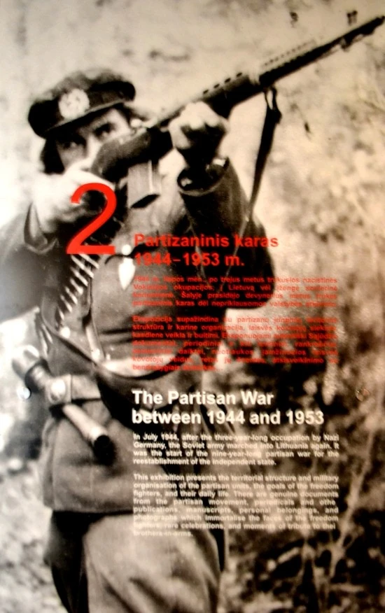 소련에 이어 1941년부터는 나치 독일이 리투아니아를 지배한다. 그리고 1944년에 3년에 걸친 나치 독일의 지배가 끝났지만, 이번에도 리투아니아인들은 완전한 독립을 이루지 못한다. 나치 독일이 물러간 자리를 다시 소련이 차지해버렸기 때문이다. 그리고 그로부터 1953년까지 9년여에 걸쳐 소련과 리투아니아 비정규군간의 전쟁이 계속되는데, 그것을 사가(史家)들은 빨치산전쟁(Partisan War)이라고 부르고 있다. 제2전시실과 제3전시실은 바로 이 빨치산 전쟁에 관한 기록들로 채워져 있다.