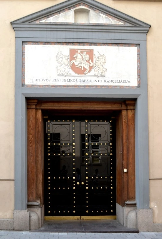 대통령궁 왼쪽으로 나 있는 골목에 약간은 권위적 느낌을 주는 문이 보이는데, 이 곳이 대통령궁 안의 대통령 집무실로 들어가는 입구라는 느낌이 들었다. 굳게 닫혀 있는 문이 주는 딱딱한 분위기, 그리고 문위에 그리핀(Griffin, 사자 몸통에 독수리의 머리와 날개를 지닌 상상속의 동물)이 리투아니아의 문장(紋章)을 안고 있는 모양이 새겨져 있는 것을 보면 누구라도 나와 같은 느낌을 받게 될 것이다.