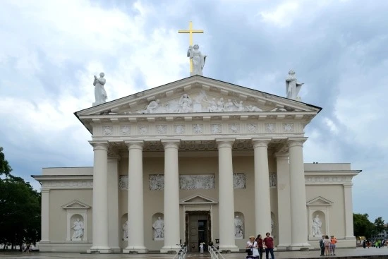 대성당은 일단 규모만 놓고 볼 때, 리투아니아 최대의 성당이다. 원래 성당의 정식이름은 '성 스타니슬라우스와 블라디슬라우스 성당(Cathedral of St. Stanislaus and Vladislaus)'이었는데, 지금은 보통 대성당이라고 불리고 있다. 이처럼 역사가 오래 된 성당들이 공통적으로 겪는 운명이지만, 대성당 역시 매 세기마다 부서지고 보수하기를 계속해 왔다. 때문에 우리가 지금 만나는 대성당에는 여러가지 건축양식이 혼재해 있는데, 외부의 성상(聖像)들은 19세기에야 비로소 더해진 것이라고 한다. 일단 대성당의 정면 모습인데, 역시 지붕 위 3명의 성자와 십자가가 제일 먼저 눈에 들어온다.