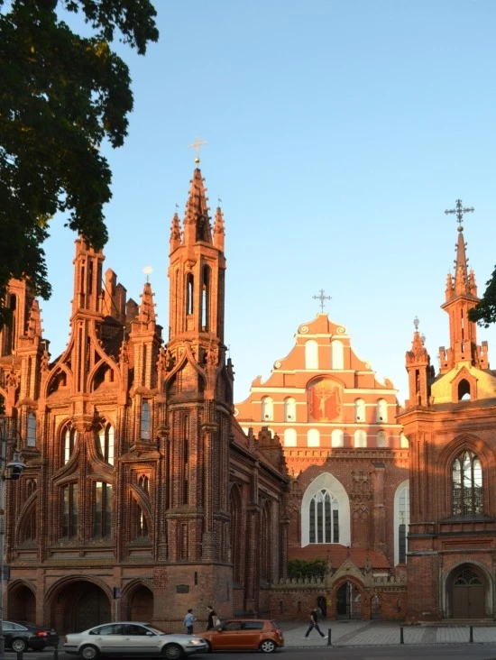 성 안나성당(St. Anne's Church, 리투아니아 현지 발음으로는 성 오나성당)은 붉은 색깔을 띤 후기 고딕 양식의 성당으로, 외부만 놓고 보면 빌뉴스는 물론이고 리투아니아 전역에서도 가장 아름다운 모습을 띠고 있는 성당이다. 나폴레옹이 이 성당의 아름다움에 감탄하여 이 성당을 손바닥에 얹어 파리로 가져가고 싶다고 했다는 이야기가 전해 올만큼 말이다. 15세기말에서 16세기 초에 걸쳐 축조된 이래 수차례에 걸쳐 소실되고, 그 때마다 복원을 반복했다고 하는데, 놀랍게도 여전히 예전의 모습을 그대로 간직하고 있다.