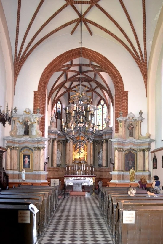 프란치스쿠스 베르나르디나스 성당의 내부 모습인데, 아래 사진이 중앙제단에 이르는 신랑(神廊)의 모습이다. 중앙제단을 향해 나아가는 복도 양옆에 있는 기둥마다 무엇인가가 붙어 있어 조금은 산만한 느낌을 주기는 하지만, 나무를 소재로 해서 그런지 나름 격조가 있다. 15세기에 축조된 까닭에 벽면이나 기둥이 깨끗이 보존되어 있지는 못하지만, 성당 전체 규모는 빌뉴스 대성당에 비추어 보아도 전혀 밀리지 않을 정도이다. 다만 성당의 규모에 비해 상대적으로 중앙제단의 장식은 지극히 소박해서, 그 흔한 제단화 한 점 찾아볼 수 가 없다.