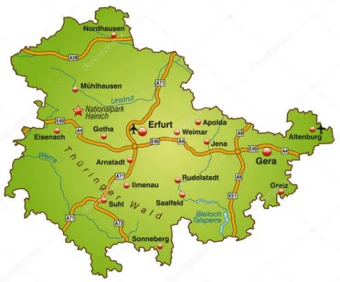 참고로 독일의 정중앙, 사람으로 치면 배꼽에 해당하는 곳인 니더도를라(Niederdorla) 또한 튀링엔주에 있는데, 니더도를라엔 이곳이 독일의 정중앙임을 알리는 표지석이 세워져 있다.