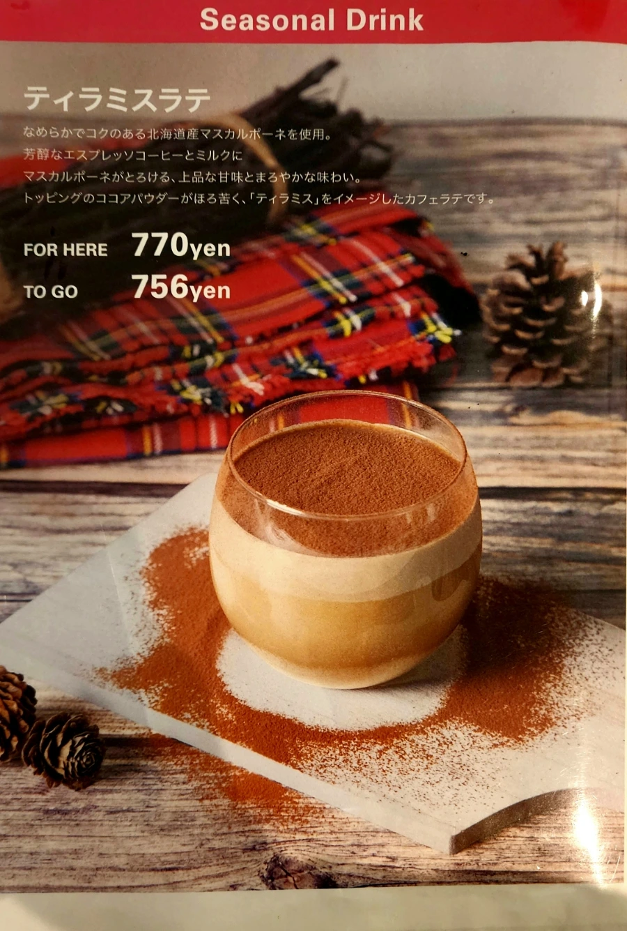 메뉴판에는 제철 음료(Seasonal Drink)가 소개되어 있는데, 먼저 이것은 테라미스라떼(약 7,000원).