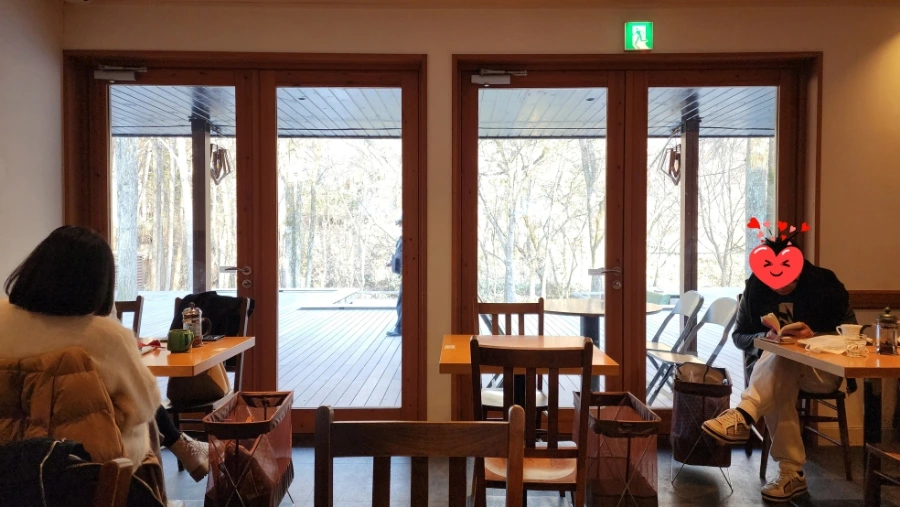 하루니레 테라스에 있는 마루야마 커피는 북 카페의 형태를 취하고 있다. 아, 가루이자와의 다른 곳에 있는 마루야마 커피를 방문한 적이 없어서, 그들 또한 북 카페의 형태를 취하고 있는지 여부는 알지 못한다.