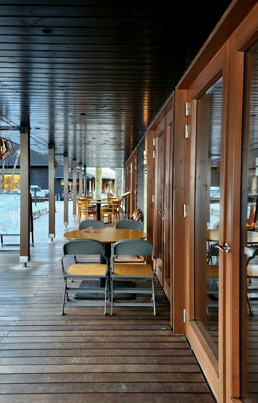 우드 데크로 연결된 느릅나무 숲속의 작은 거리 "하루니레 테라스(ハルニレテラス)."하루니레 테라스에 어떤 레스토랑, 카페, 상점이 들어와 있는지를 알고 싶다면 아래 사이트를 클릭해 보기를 바란다.
