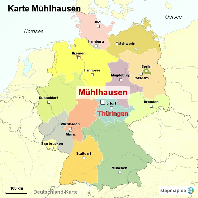 독일 중부에 있는 튀링엔(Thüringen)주의 주도인 에어푸르트(Erfurt)로부터 북서쪽으로 약 55km쯤 떨어진 곳에 "뮐하우젠(Mühlhausen)"이란 작은 도시가 있다. 면적 135.52km²에 인구 36,110명(2021년 현재) 정도 규모의 도시이니, 적어도 뮐하우젠을 대도시라고 부를 수 없는 것만은 확실하다. 뮐하우젠의 위치에 대해서는 아래 지도를 참조하기를...