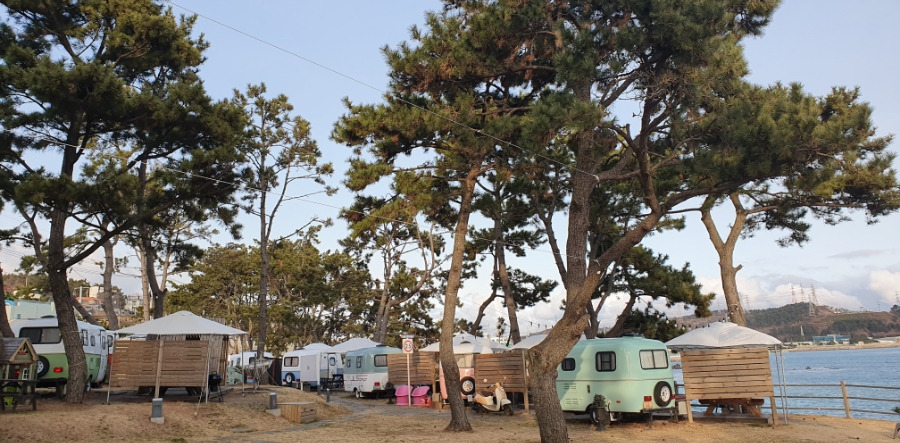 바다를 바라볼 수 있는 1층 옆에는 하룻밤을 유할 수 있는 캐러밴들이 들어서 있다. 그릴도 하고, 술도 곁들이며 캠핑을 즐길 수 있는 공간인데, 정확히 기억은 안 나지만 사용료는 좀 비쌌던 것 같다.