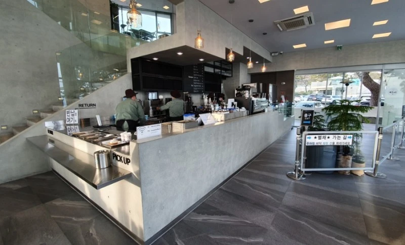 유명하다는 말은 익히 들었지만, 기장에서도 구석(?)에 있는 WAVEON COFFEE를 찾은 이들이 끌고 온 자동차로 주차장은 벌써 만차 일보직전이다. 주차요원의 말로는 신종 코로나 바이러스 때문에 잠시 주춤해 이 정도이며, 그 이전에는 그야말로 몰려드는 차들로 주차자은 미어터지는 수준이었다고 한다.