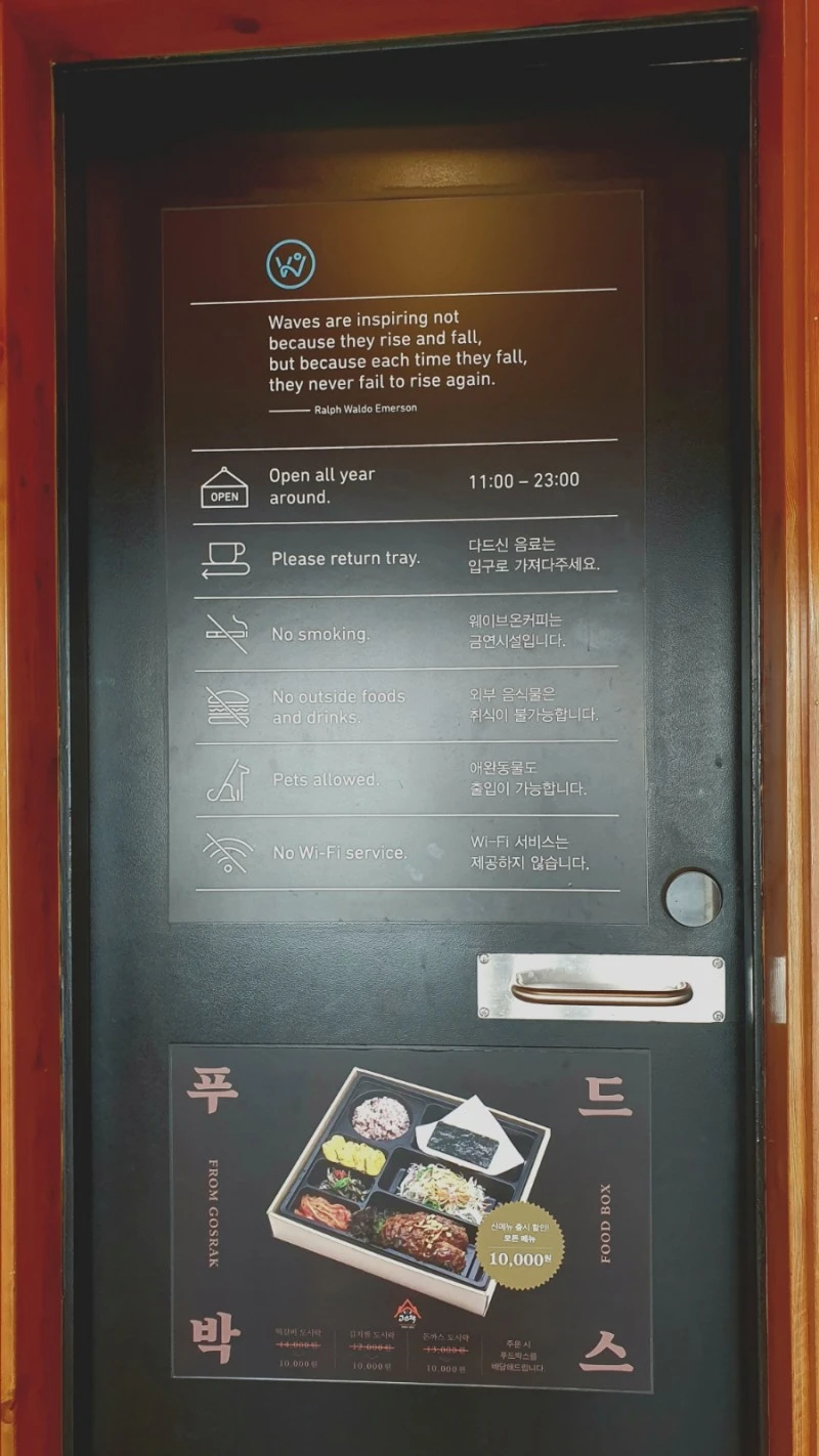 아, 무료로 사용할 수 있는 공간이니 내부 공간이 허접하리란 생각은 버리는 것이 좋다. 문에 쓰여 있는 "파도 위에서 편하게 쉬세요"라는 말이 실현되니 말이다.