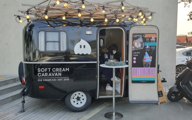 카페로 들어가는 길목에 자리한 소프트 아이스크림 캐러밴. 앙징맞다.