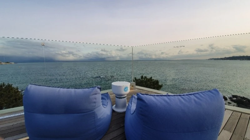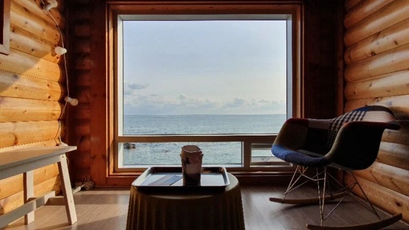 사실 이 정도의 바다 경치를 한가로이 즐길 수 있는 것만으로도 WAVEON COFFEE는 경쟁력이 충분하다. 그렇지만 WAVEON COFFEE의 진짜 매력은 아직 시작도 안 했다고 봐야 한다. 이곳이 아니면 절대 불가능하다고 할 수 있는, 그리하여 WAVEON COFFEE의 시그네이쳐 공간이라 할 수 있는 곳이 있는데, 그곳은 바로 나만의 공간에서 바다를 온전히 내 것으로 만들 수 있는 아래 사진 속의 별채이다. 추가요금을 부담하지 않고도 2시간을 저곳에서 보낼 수 있다.