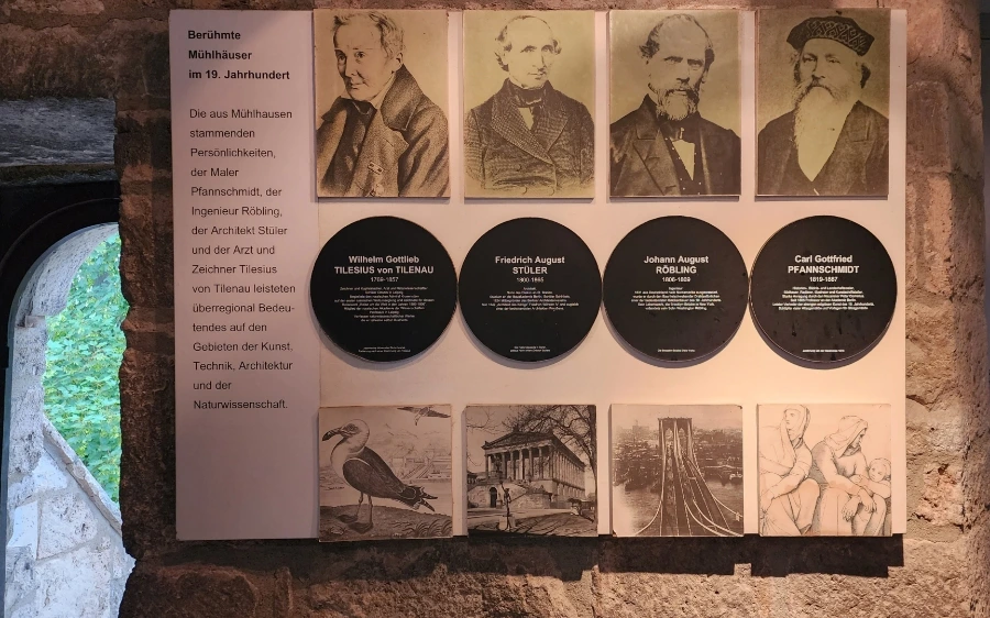 그리고 그들 탑안으로는 이런 전시물들이 마련되어 있다. 성벽위의 탑들이 마치 박물관의 전시실과 같은 기능을 하고 있는 셈인 것이다. 이 전시실에는 19세기에 뮐하우젠을 빛나게 했던 인물들이 소개되어 있는데, 내가 이름을 들어본 사람은 딱 한사람 뿐이다.