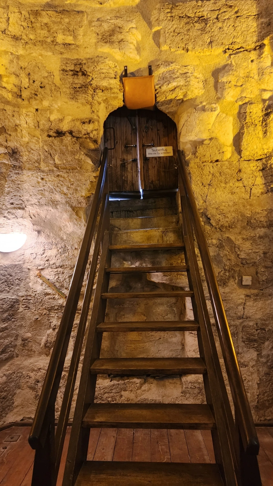 그 문이 탑 밖으로 나가는 통로의 역할을 한다. 사다리를 올라 문을 열고 밖으로 나가면, 이렇게 높은 곳에서 뮐하우젠의 모습을 아무런 방해물없이 바라볼 수 있다. 이처럼 프라우엔토어와 성벽길을 바라볼 수 있는가 하면,