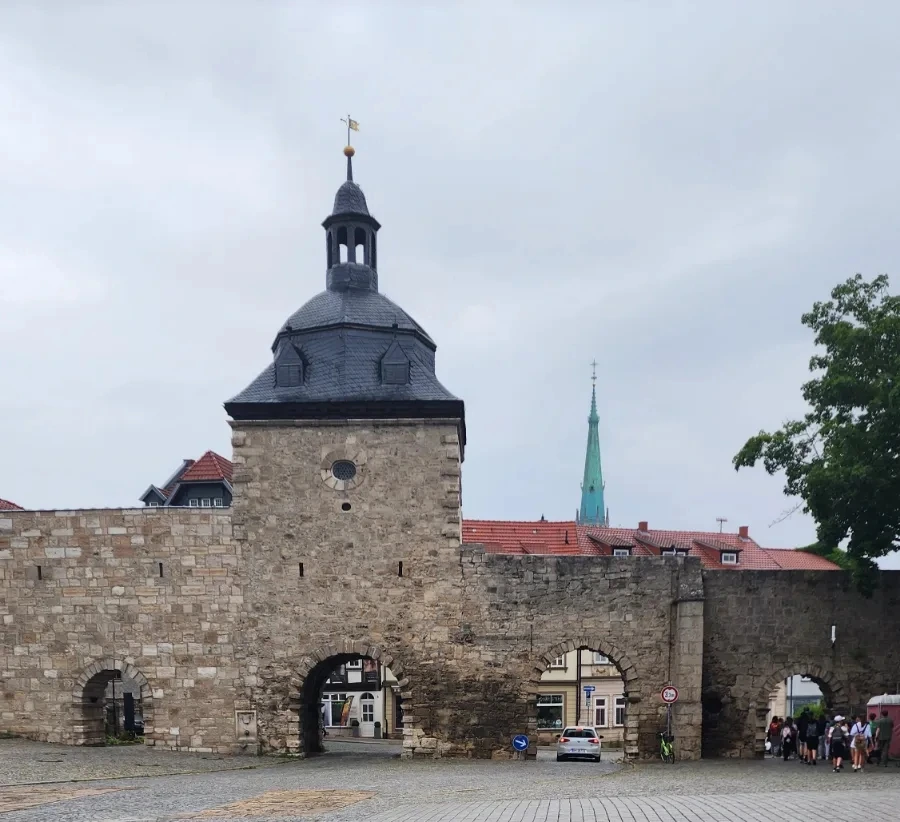 성벽 위에는 수많은 탑들이 있는데, 프라우엔토아쪽에서 오르는 경우 제일 먼저 만나는 것은 라벤탑(Raventurm)이다. 아래 사진을 보면 탑위에 올라 뮐하우젠의 풍경을 즐기고 있는 사람들이 보이는데, 나도 곧 저들 사이에 합류할 계획이다.
