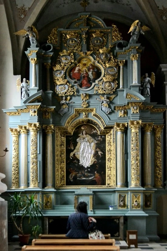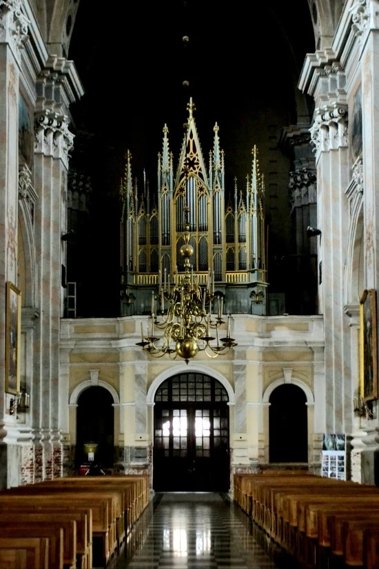 금빛으로 화려하게 빛나는 중앙 제단과 중앙 제단 뒤쪽의 기둥 및 조각상을 바라보면, 성당의 내진(內陣)에도 신경을 많이 썼다는 것을 알 수 있다(왼쪽 사진). 또한 성당 후면의 파이프 오르간은 그 자체가 성당의 모습을 띠고 있어 이채롭다(오른쪽 사진).