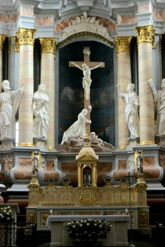 구시청사 광장에 접하여 두 개의 첨탑과 핑크빛이 특징적인 교회가 서 있는데, 이 교회는제주이트교단 소속의 교회로 공식명칭은 "성 프란체스코 사비에르교회"이다(지도상의 5번). 제주이트 교회가 이곳에 처음 자리 잡은 것은 1642년이고, 후기 바로크양식이 적용되어 지금과 같은 모습을 갖추게 된 것은 1666년-1720년에 걸쳐 행해진 오랜 작업의 결과라고 한다. 아쉬운 것은 내가 이곳을 찾았을 때는 한창 보수작업 중이어서 교회의 제 모습을 충분히 보지 못한 것인데, 이런 일이야 유럽의 도시들을 여행할 때 흔히 겪게 되는 여행의 상소(常素)이다.