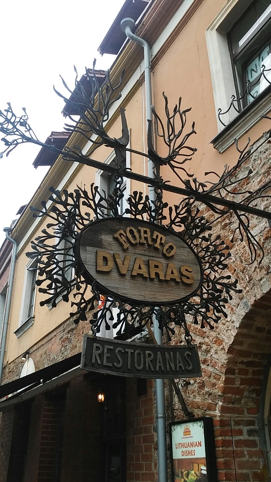 여행 일정상 다시 돌아올 것이지만 오늘이 잠시 리투아니아를 떠나는 날인만큼 리투아니아를 떠나기 전 점심은 리투아니아식으로 해결하기로 마음먹었는데, 그 순간 거짓말처럼 정통 리투아니아식 음식을 내는 DVARAS라는 식당이 눈에 들어왔다. 다른 레스토랑들에 비하여 규모가 커 보였고, 무엇보다도 돌출 간판의 비주얼도 괜찮아서 망설임 없이 오늘 점심 장소로 이곳을 선택하고, 고고씽!!