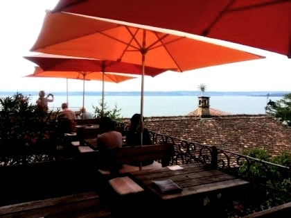 그리고 아래 사진은 신성(新城, Neues Schloss)의 정원에서 바라본 메어스부르크와 보덴 호수의 풍경을 보여주고 있다.