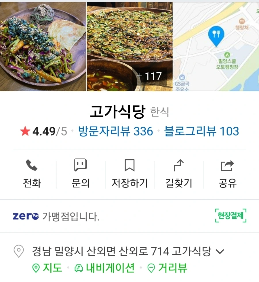 아래 사진에서 보듯이 네이버는 "고가식당(古家食堂)"을 이미 엄청나게 많은 사람이 다녀갔고, 그들로부터 하나같이 높은 평점을 받고 있다고 말하고 있다. 그리고 이곳에서 식사를 한 내 평가 또한 그와 별반 다르지 않다. 고가식당, 한마디로 '밀양 맛집'이란 말이 전혀 부끄럽지 않은 곳이다.