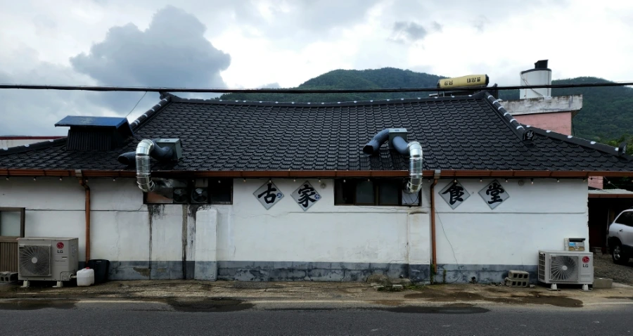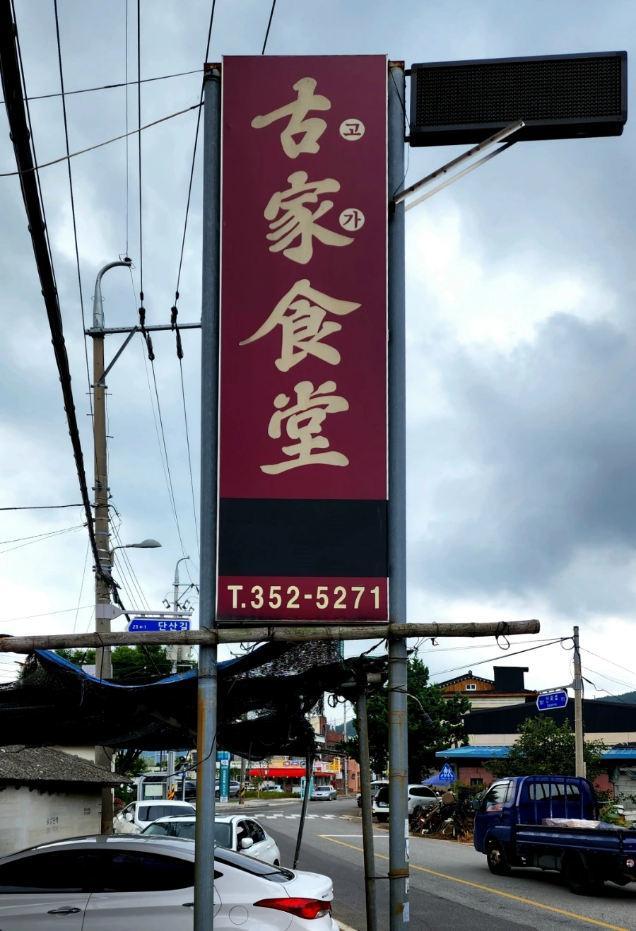 고가식당의 외관. 고가식당(古家食堂)이란 식당 이름에 걸맞게 옛날 기와집을 그대로 이용하고 있고, 간판 또한 예스럽게 한자로 古家 食堂이라고 한자로 써놓았다.