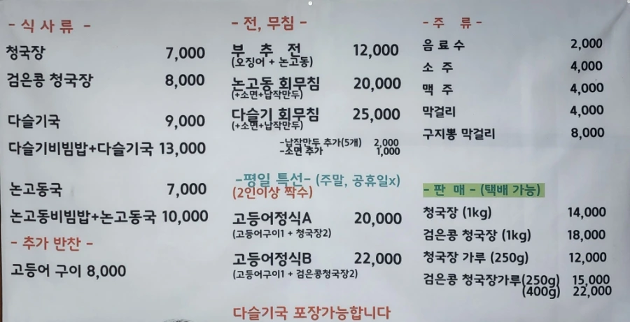 아, 이곳을 다녀가신 블로거분들이 남기신 글에는 청국장 또한 일품이란 이야기가 많은데, 두 명이 찾은 까닭에 이 또한 아쉽게도 맛보지 못했다.