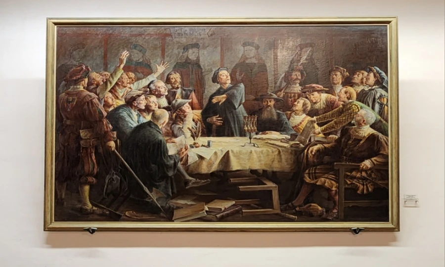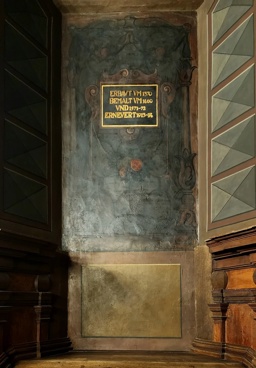 그리고... 방의 왼쪽 벽면에서 이 벽화를 발견했다. 앞에서 보여준 그림에서 토마스 뮌처 뒷편의 벽에 그려져 있던 모습인데, 이를 보는 순간 비로소 퍼즐이 맞춰진 느낌을 받았다. 안내하시는 분이 왜 그 그림을 잘 봐두라고 하셨는지도 이해가 되고.