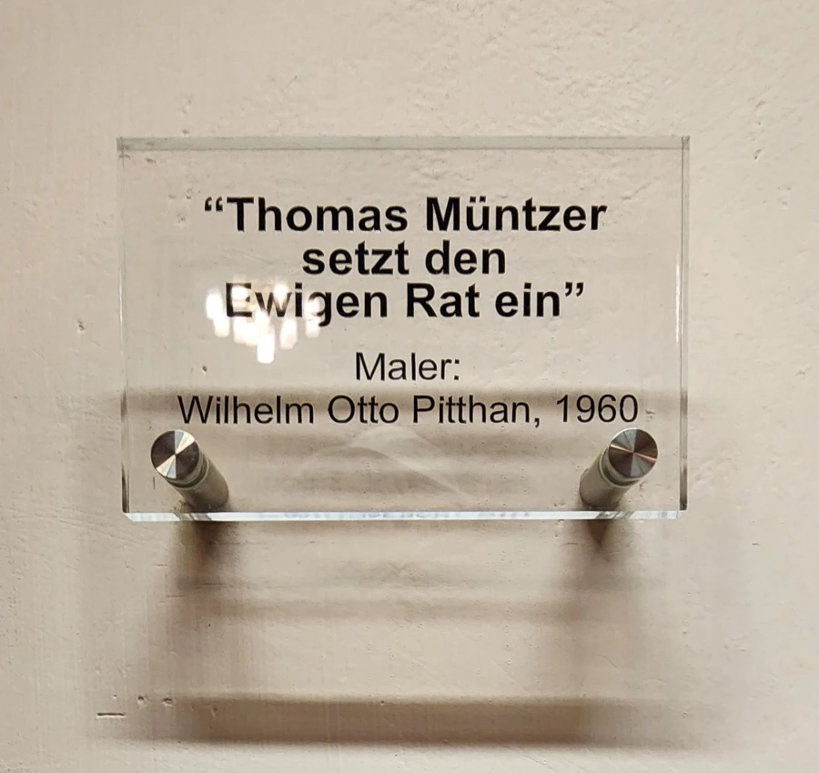 그림의 제목은 "토마스 뮌처가 상설평의회를 설치하다(Thomas Müntzer setzt den ewigen Rat ein)"으로 1960년도 작품이다. 화가는 Pitthan인데, 독일사이트까지 모두 뒤져봤지만 검색이 되지 않는다. 하여 작가에 대한 소개는 하지 못한다.