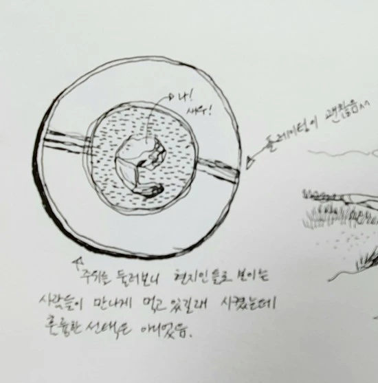 두 번째 의문은 바닷가 모래 사주에 어찌하여 바다가마우지가 아니라 '민물' 가마우지가 집단으로 서식하고 있을까?라는 것이었는데, 역시 전적으로 내 생각이지만 석호(Lagoon)의 염도가 낮아서 민물과 유사한 환경을 제공해 준 것 때문이 아닐까 싶다. 안내판 하단에 민물가마우지와 왜가리의 모습이 보여 사진을 남겨 두기로 한다.