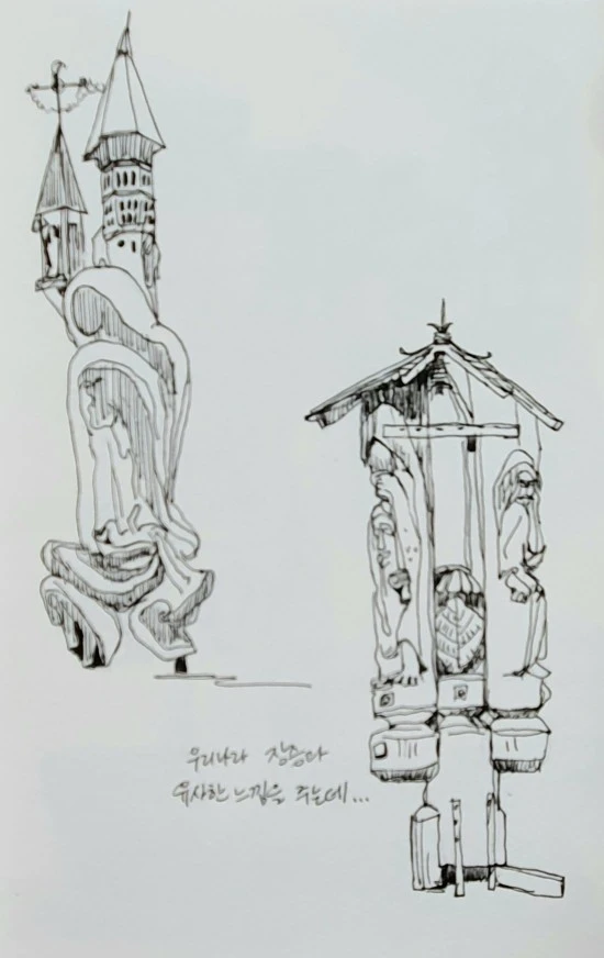 그리고는 계속해서 나무조각들이 나타나는데, 아래의 두 작품은 우리네 장승과 유사하다는 느낌을 준다.
