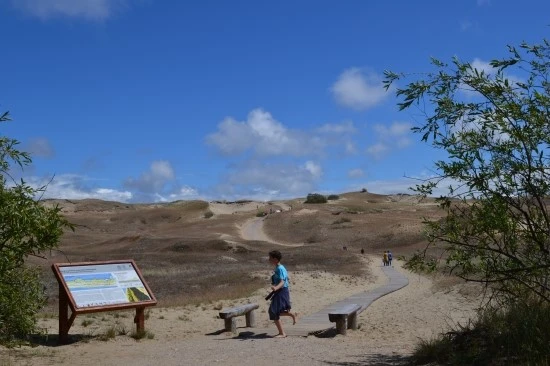 숲길을 지나쳐 나오면, 비로소 모래가 슬슬 모습을 나타내기 시작하는데, 모래 한가운데로 눈에 보이는 곳까지 나무 path가 깔려 있다. 사실 이곳도 모래 언덕의 일부인데, 양옆으로 나무들이 듬성듬성 보이고, 저 멀리까지도 모래 위를 식물이 뒤덮고 있어서 아직은 모래 속으로 들어와 았다는 실감은 나지 않는다.
