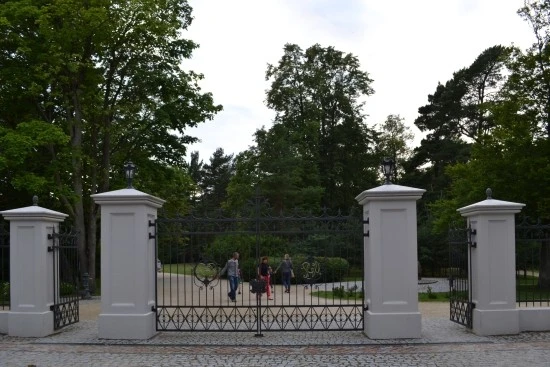 국내에서 발간된 리투아니아 관광안내 책자는 '호박 박물관'에 대하여 단 몇 줄의 기본 정보만을 제공하고 있을 뿐이지만, '리투아니아 최대'라는 말에 이끌려 네비게이션에 의존해 '호박 박물관'을 찾았다. 그런데 문제는 네비게이션이 인도한 곳에 내려 주위를 아무리 둘러보아도 박물관으로 생각되는 건물이 보이지 않는다는 것. 하여 "아래 사진 속의 문을 지나면 곧 호박 박물관이 나오는구나"라고 생각했는데, 이것은 그야말로 엄청난 착각이었다. 왜냐하면 이 문은 팔랑가 식물공원(Palanga Botanic Park)의 시작을 알리는 것일 뿐이고, 여기서부터 숲길을 한도 끝도 없이 걸어 들어가야만 비로소 호박 박물관이 나타나니까 말이다. 결국 호박 박물관은 넓디넓은 팔랑가 식물공원의 아주 작은 부분에 불과한 셈이다. 얼마나 넓기에 "넓디넓은"이란 말을 쓰냐고? 놀랍게도 이 공원의 총면적은 무려 100ha, 즉 1,000,000제곱미터(약 30만 평)에 이른다.