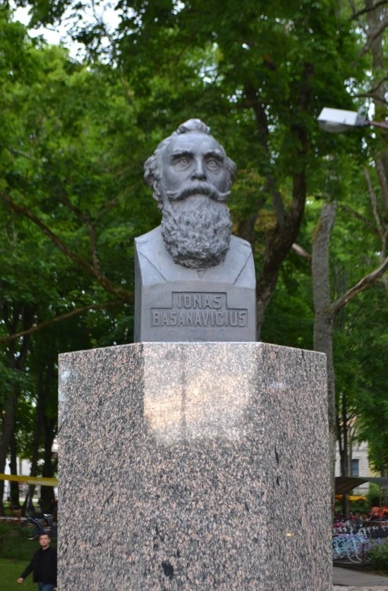 바사나비츄스 거리가 시작하는 맞은편 도로변에 이 길의 이름을 낳게 만든 바사나비츄스(Basanaviciaus, 1851~1927)의 흉상이 있다. 아, 바사나비츄스는 19세기말에 리투아니아 최초의 신문인 아우슈라(Ausra) 창간에 일조하는 등 민족문화의 기틀을 잡았을 뿐만 아니라 리투아니아의 독립운동을 주도하기도 한 인물인데, 리투아니아 사람들은 그를 리투아니아의 아버지(國父, Patriarch of Lithuania)라고 부르고 있다. 때문에 바사나비츄스란 이름의 거리는 비타우타스 대로의 경우와 마찬가지로 리투아니아 어느 도시를 가도 만날 수 있다.