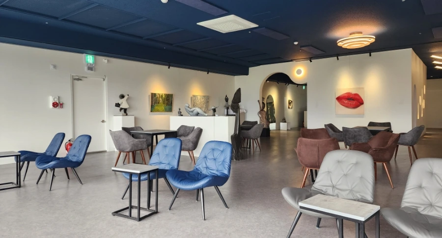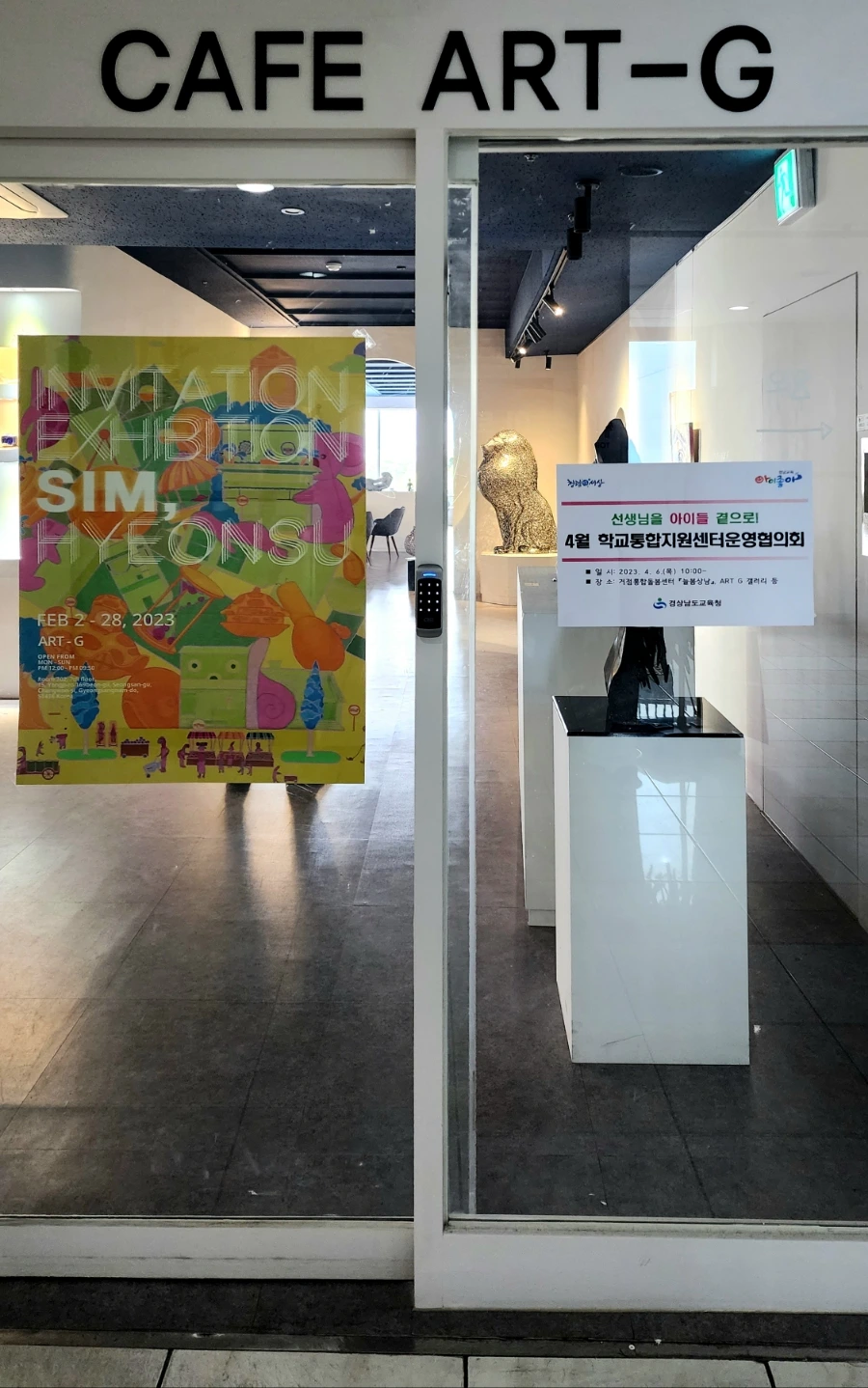 문을 열고 들어서면, 먼저 갤러리 감성이 물씬 풍기는 전시공간이 보인다. 보통의 갤러리 카페들이 카페의 벽면에 작품 몇 점 걸어두는 정도가 전부인 것과 달리, 카페 아트지는 보다시피 완전한 전시공간을 확보하고 있고, 그런 점에서 여타 갤러리 카페들과는 차원을 달리하는 면이 있다.
