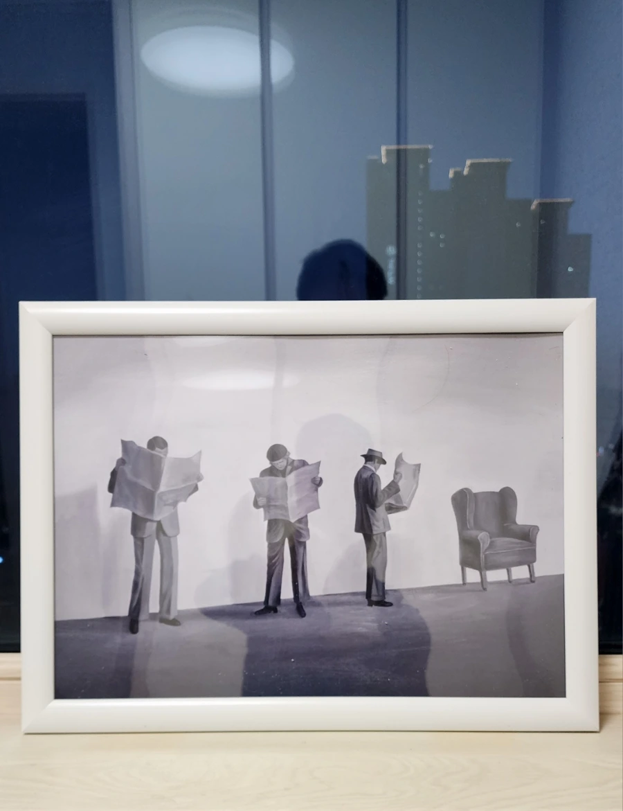 카페로 활용되는 공간에도 벽면에 많은 작품들이 전시되고 있는데, 그중에서 맘에 드는 작품을 몇 점 가져와보았다. 이들 작품에 관한 정보는 사진 밑에 써놓았는데, 물론 작품이 마음에 든다면 구매도 가능하다.