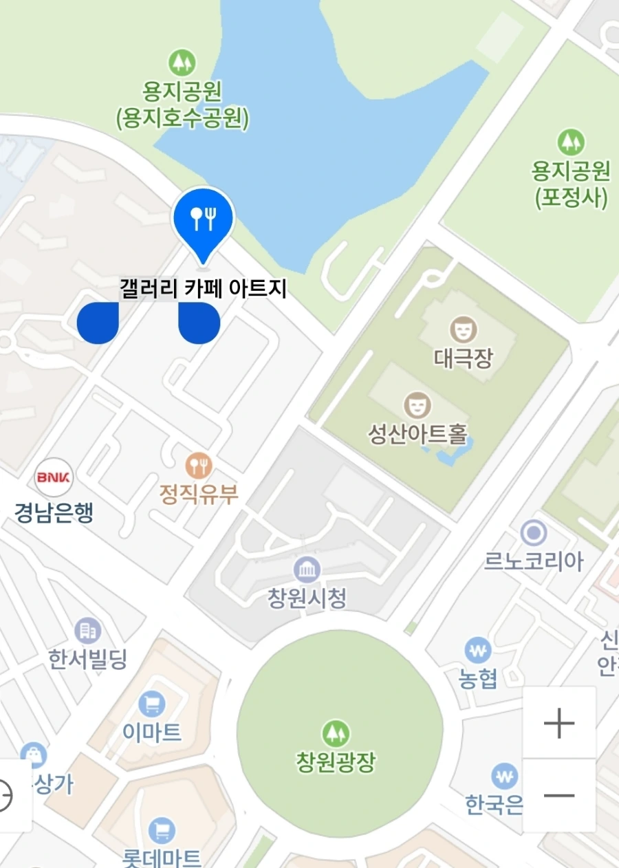 아래지도에서 보듯이 창원 시내 한복판에 용지호라는 그리 크지 않은 호수가 하나 있다. 그리고 창원시는 용지호 주변에 숲과 산책로를 조성하여 용지호수공원을 만들었는데, 용지호수공원은 콘크리트 일색의 건물에 뒤덮여 삭막하기 그지없는 창원에서 시민들의 주요한 힐링 공간으로서의 기능을 훌륭히 수행하고 있다.