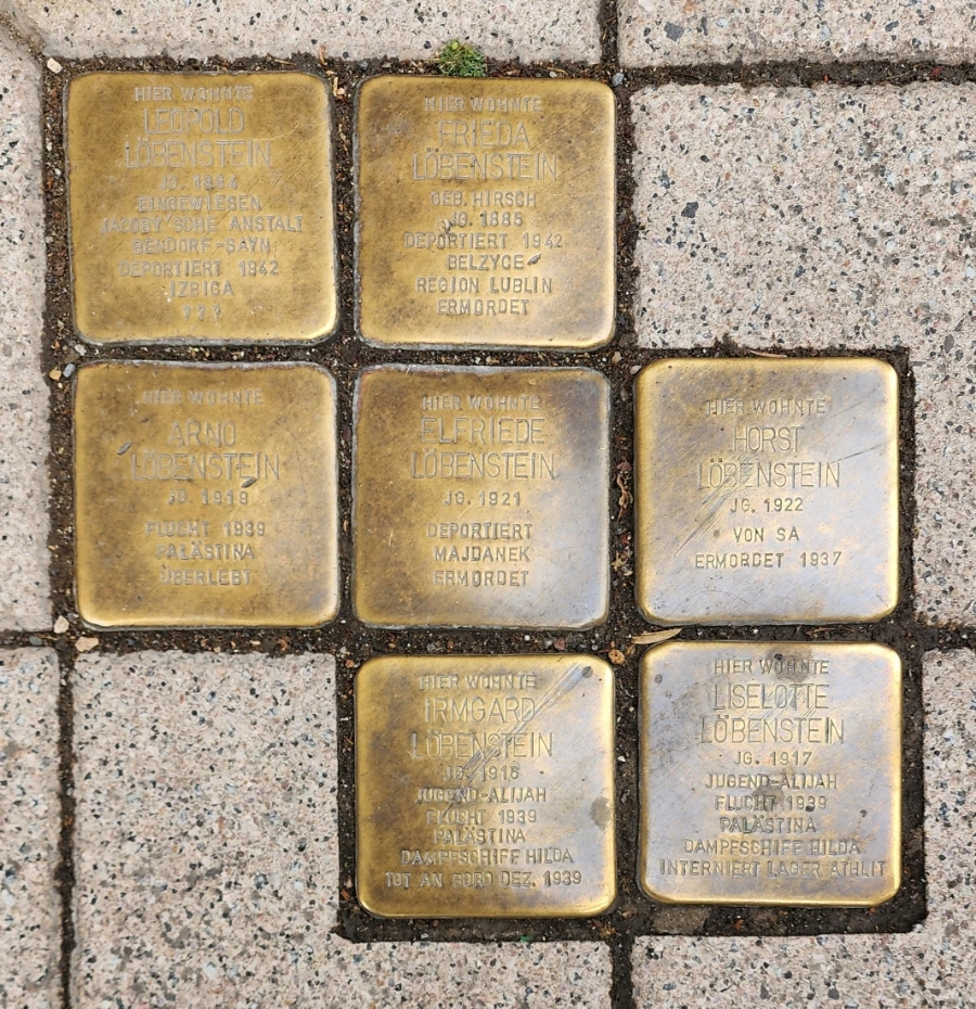 같은 형태의 동판이 한 곳에 이렇게 여러개가 모여있는 것도 보았는데, 아마도 이 보도 앞의 건물에 다수의 유태인이 살고 있었던 것으로 추정된다. 그런데 이들 동판을 하나씩 읽어 나가다가 이전에 보았던 것들과는 다른 내용이 쓰여져 있는 것을 발견했는데, 그곳에는 이 곳에 살던 유태인 중 로벤슈타인(LOBENSTEIN)이란 사람은 요행히 "팔레스타인으로 탈출하여 여생을 보냈다"고 적혀 있었다. 생사의 기로에 선다는 말이 이런 것이었던가?