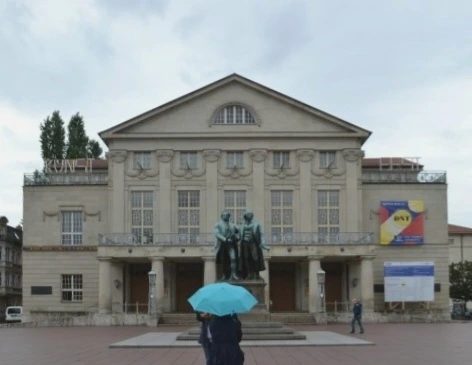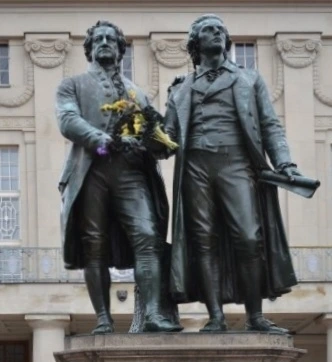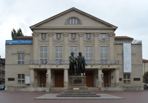 국민극장 앞에는 바이마르를 빛낸 2명의 문호, 바로 괴테와 쉴러가 사이좋게 손을 맞잡고 있는 동상이 서 있다. 이 사진은 바이마르를 소개할 때 거의 예외 없이 가장 처음에 등장하는 유명한 사진인데, 괴테와 쉴러만 클로즈업하여 한 장의 사진을 남긴다.