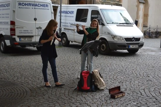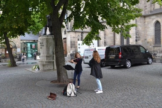 유럽여행 중에 자주 만나는 장면 가운데 하나는 자신들의 음악적 재능을 가지고 돈을 벌어가며 여행을 하는 젊은 친구들이 버스킹을 하는 장면이다. 아래 사진 속의 2명의 연주자 또한 그러한 예에 속하는데, 이들이 연주하고 있는 곳은 라이프치히(Leipzig)의 토마스교회(Thomaskirche) 앞 광장이다. 감미로운 플루트 연주에 본인들도 몰두해 있고 나 또한 그에 빠져 들었다. 문제는 사람들이 이들의 연주에 돈으로 답례를 하는 것에 생각보다 인색하더라는 것. 그나저나 조금 전까지 연주를 함께 듣던 그 많던 사람들은 전부 어디 갔는지 모르겠다.